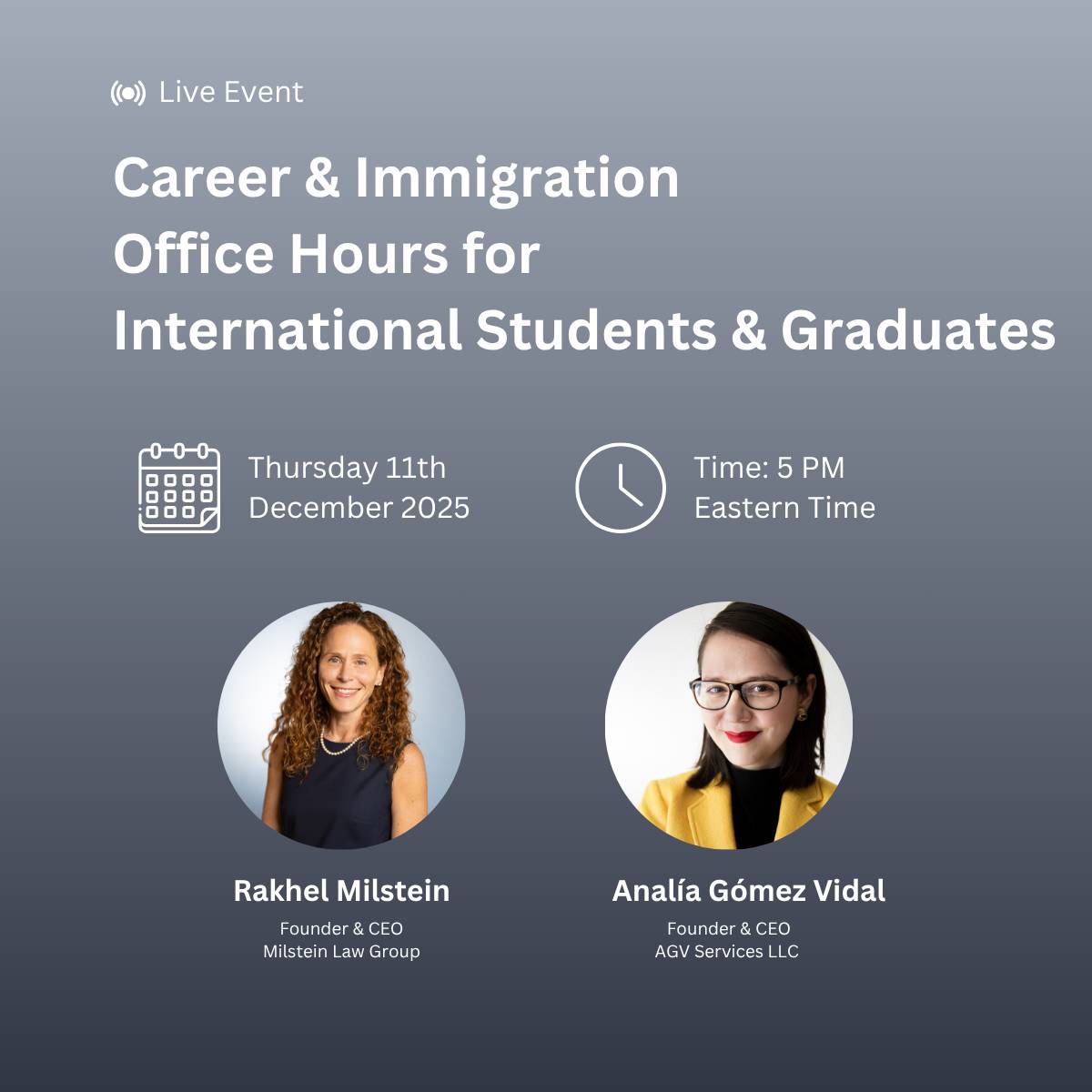 This is the second iteration of our collaboration with Rakhel Milstein, founder of Milstein Law Group, focused on providing career coaching advice and education on immigration based on participants questions. In our first session, we covered essential distinctions between H-1B and O1 visas, regulations about J-1 and F-1 visas, and questions regarding parameters for EB1 and EB2 NIW filings.